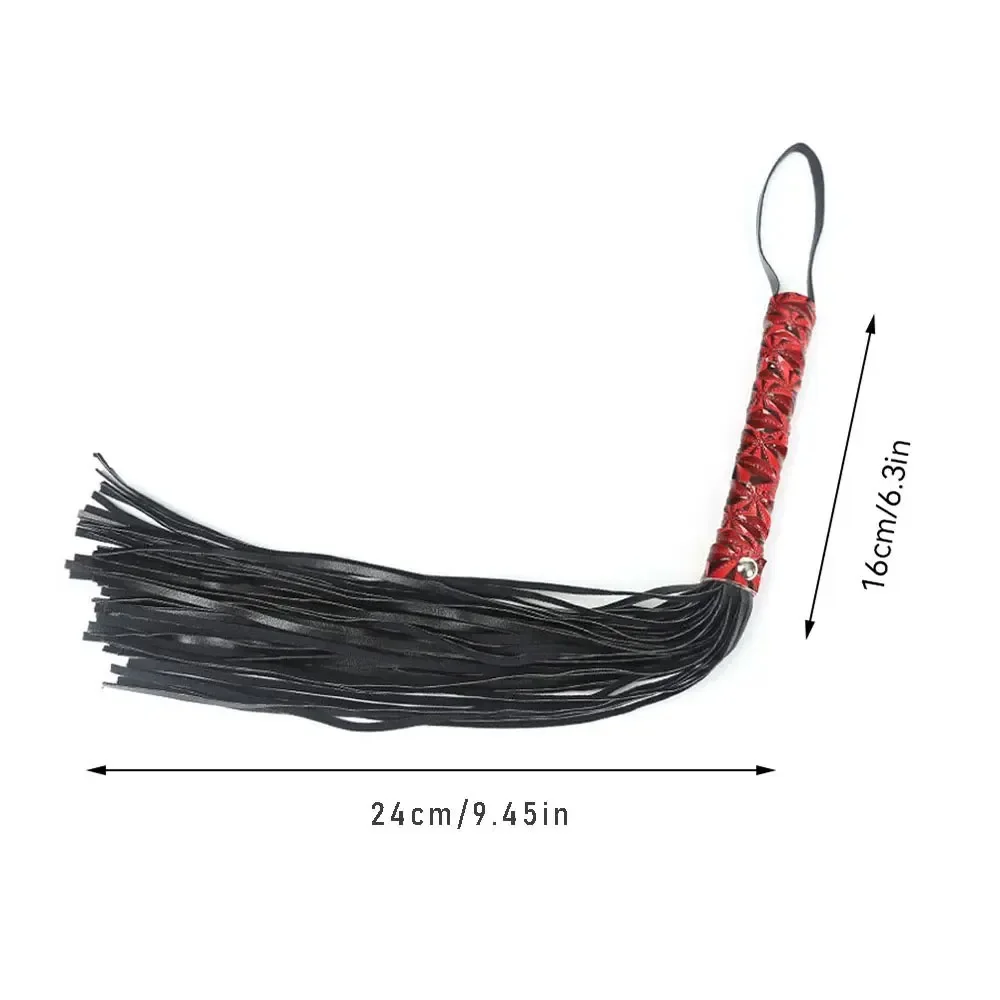 This PU leather horse whip features non-slip design with comfortable handle and exquisite tassels decoration. The product includes various styles such as riding crop, short whip and party flogger, specially designed for equestrian teaching, racing training and theme parties. High-quality PU leather material ensures durability, black design showcases queen style. Whether for professional equestrian training or party performances, this horse whip delivers excellent handling and control performance, making it an ideal choice for equestrian enthusiasts.